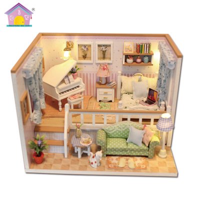 Happyline Dollhouse Miniature With Furniture Diy Dollhouse Kit Plus Dust Proof And Music Movement 1 24 Scale Creative Room Idea Dream Angels Walmart Com